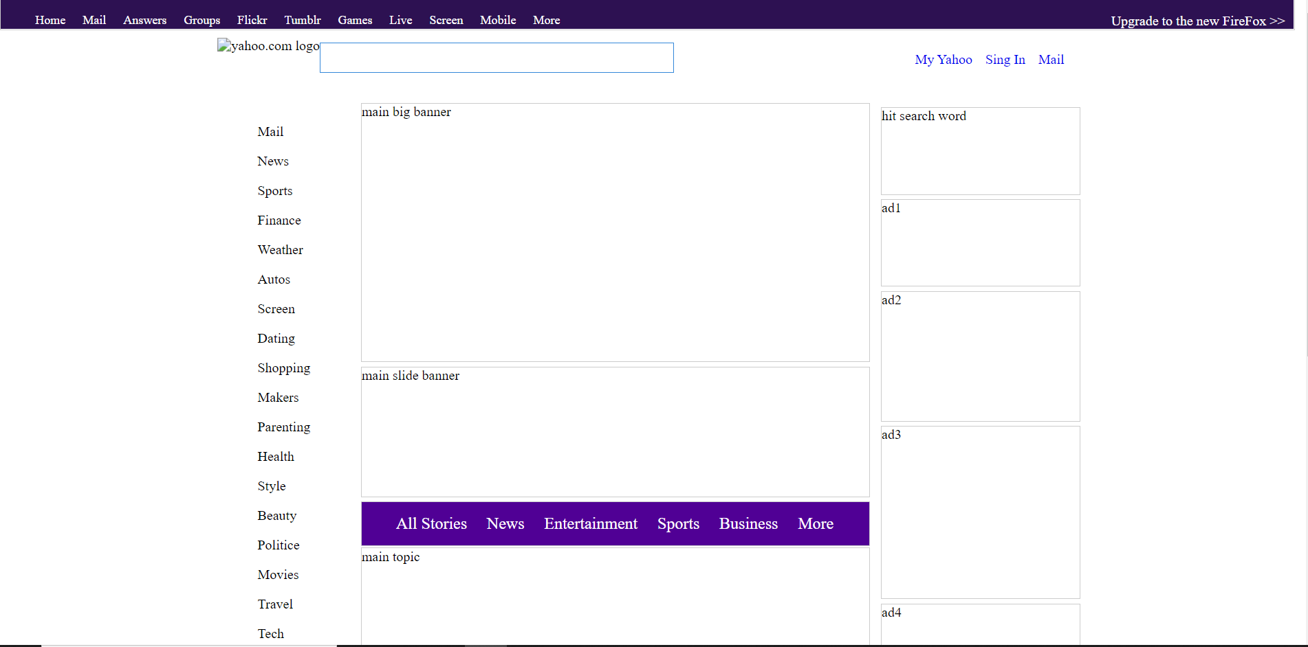 이번 시간은 강사님이 한거 보고난 뒤 안보고 스스로 야후 사이트(언제적 야후 사이트냐....) 를 만들어보기로 했다.