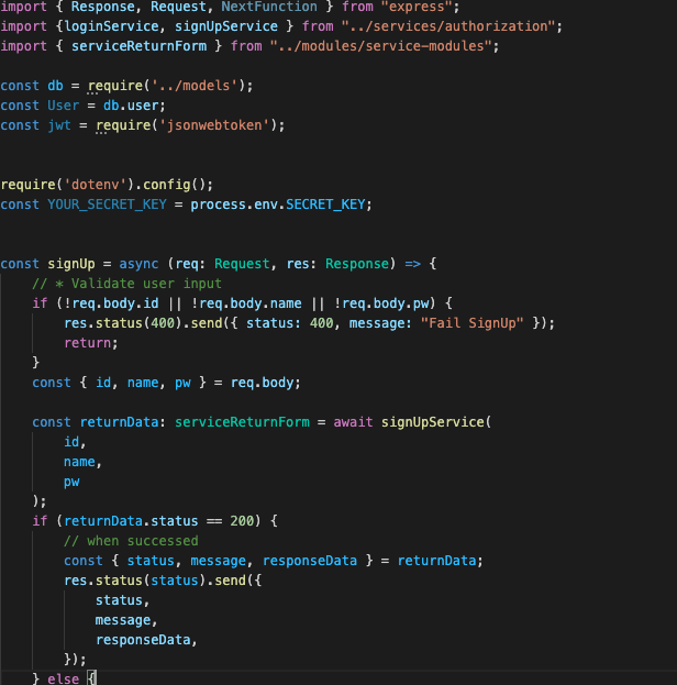 controller: 라우팅 정보에 의해 전달된 처리를 하는 로직입니다.
