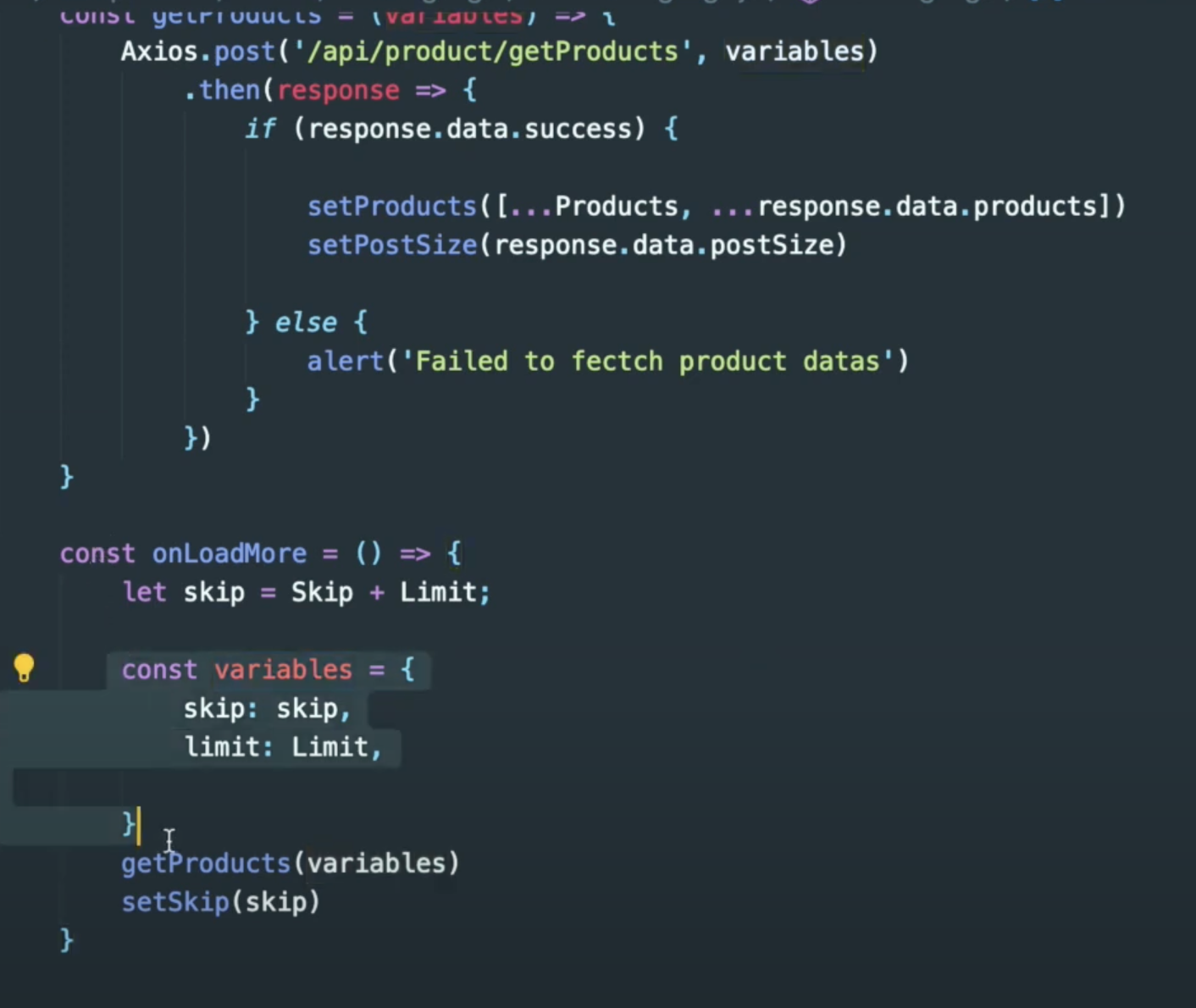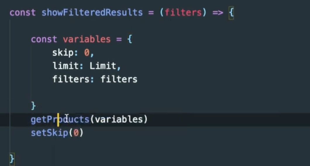 varialbes 에 skip, limit , filters(객체) 를 getProducts 라는 api 에 넘겨준다.