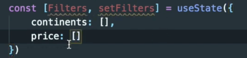 - setFilters : { continents: [ ], price: [ ] } 로 필터된 목록들을 저장