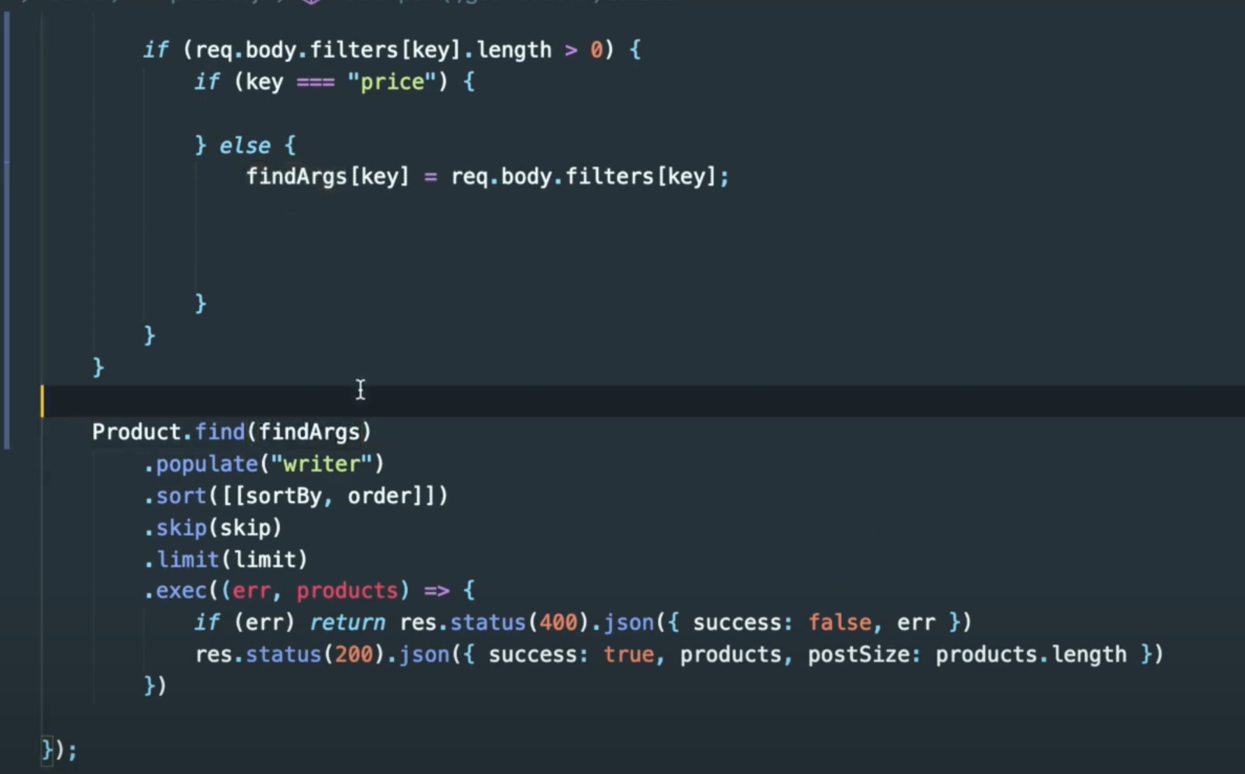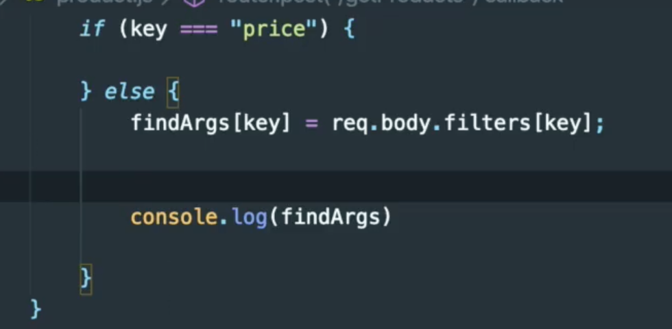 Product.find() 에 findArgs 를 추가해준다.