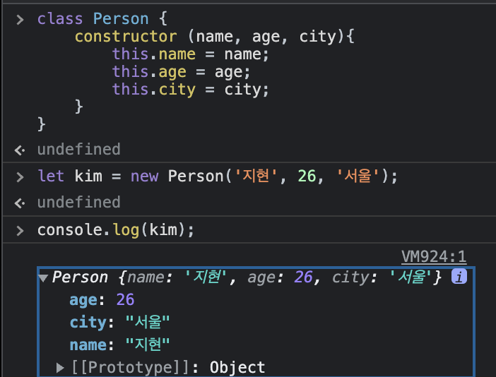 let kim = new Person('kim','24','seoul');