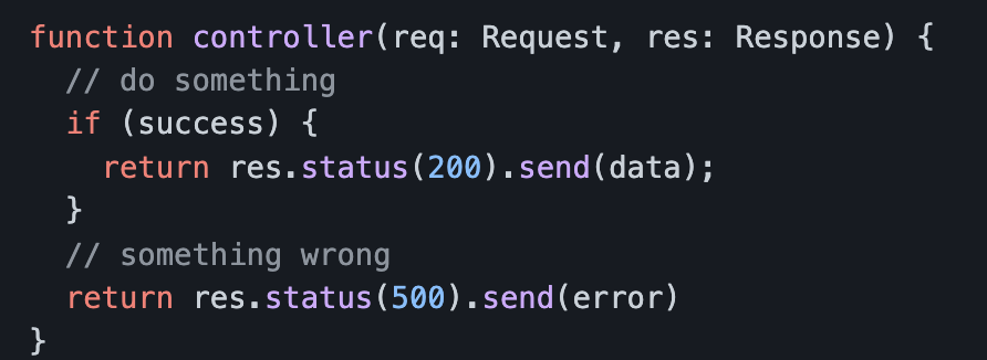 컨트롤러는 마지막 미들웨어이기 때문에 next 인자가 필요 없다.