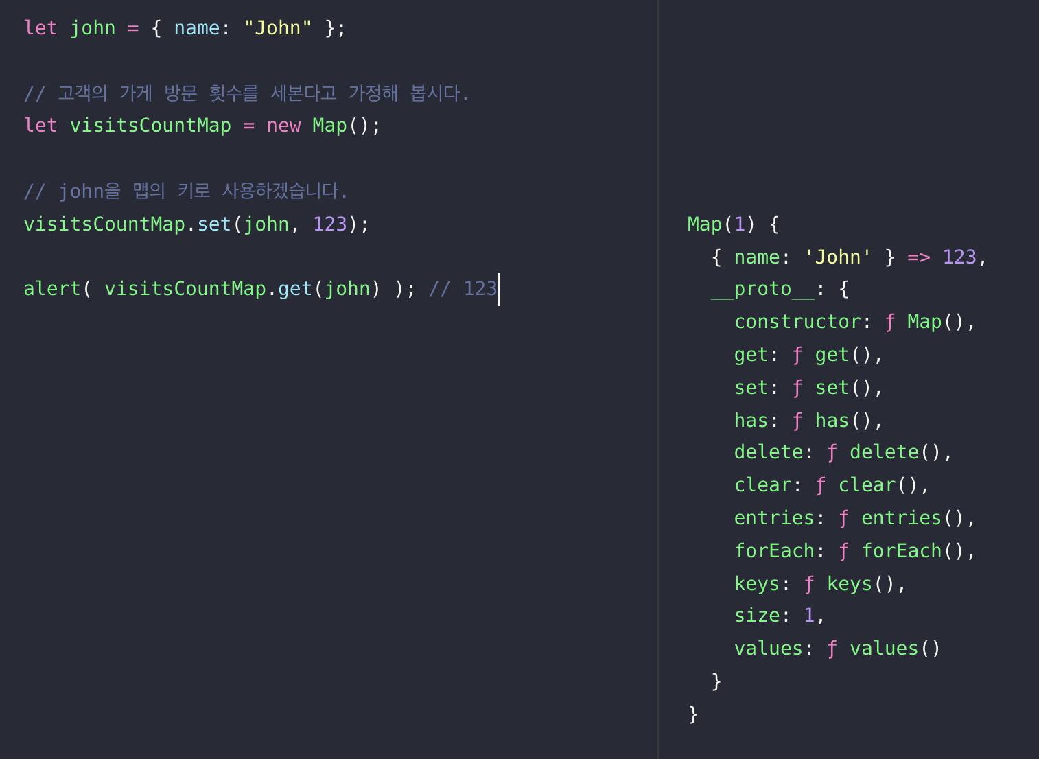 객체를 키로 사용할 수 있다는 점은 맵의 가장 중요한 기능 중 하나입니다.