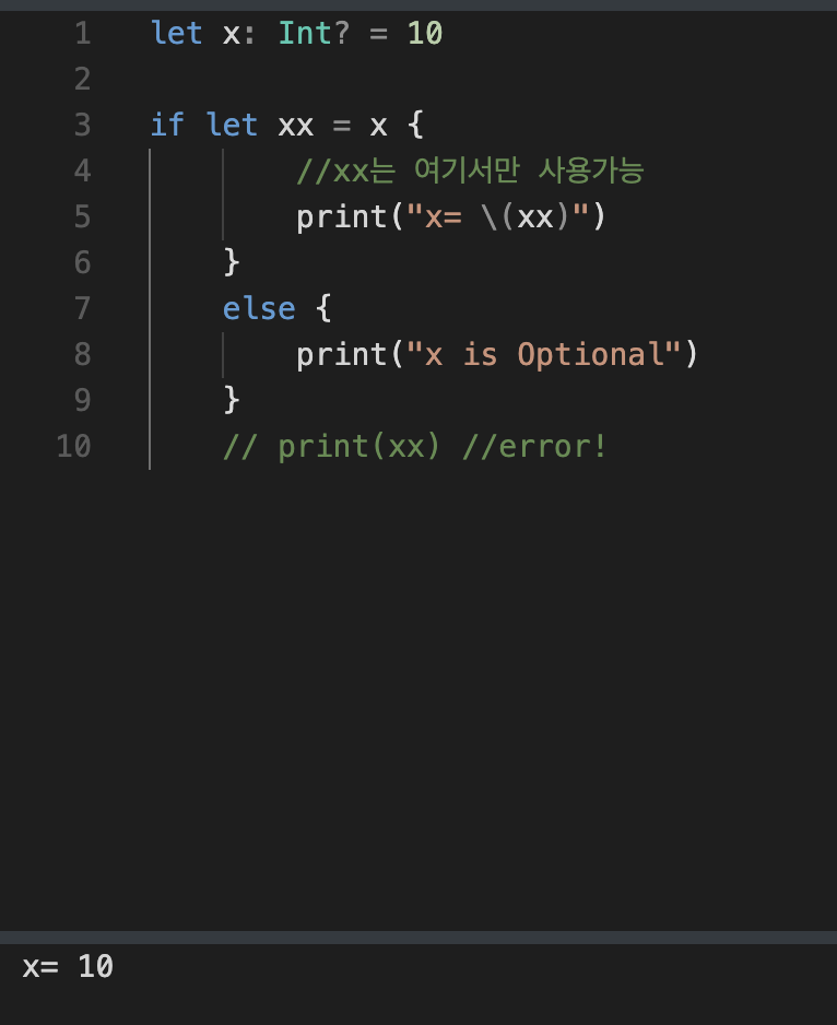 if let의 경우에는 옵셔널 추출을 실패하여 false가 된 else문 뿐만 아니라 성공한 경우에도 제어를 할 수 있습니다.