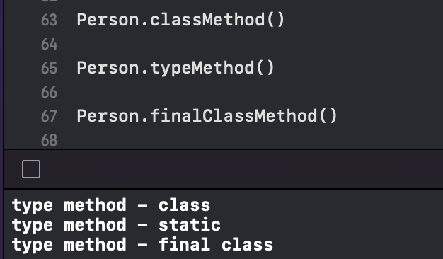 // 메서드 앞의 `static` 과 `final class` 는 똑같은 역할을 합니다