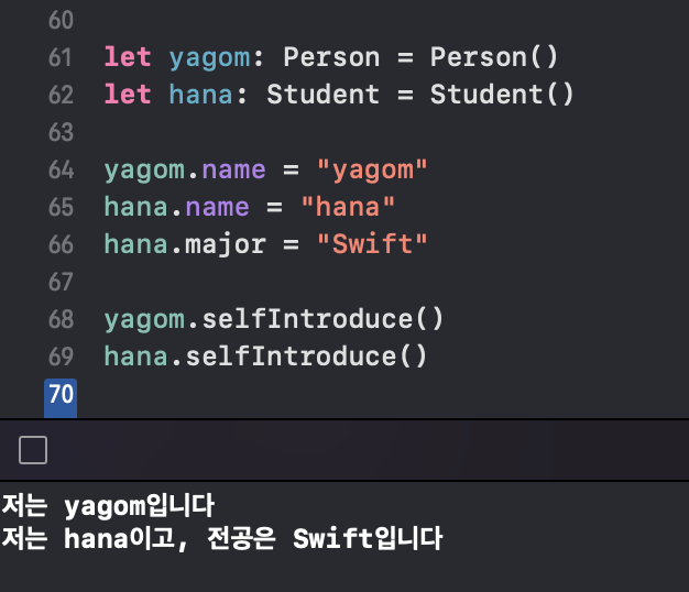 print("저는 \(name)이고, 전공은 \(major)입니다")