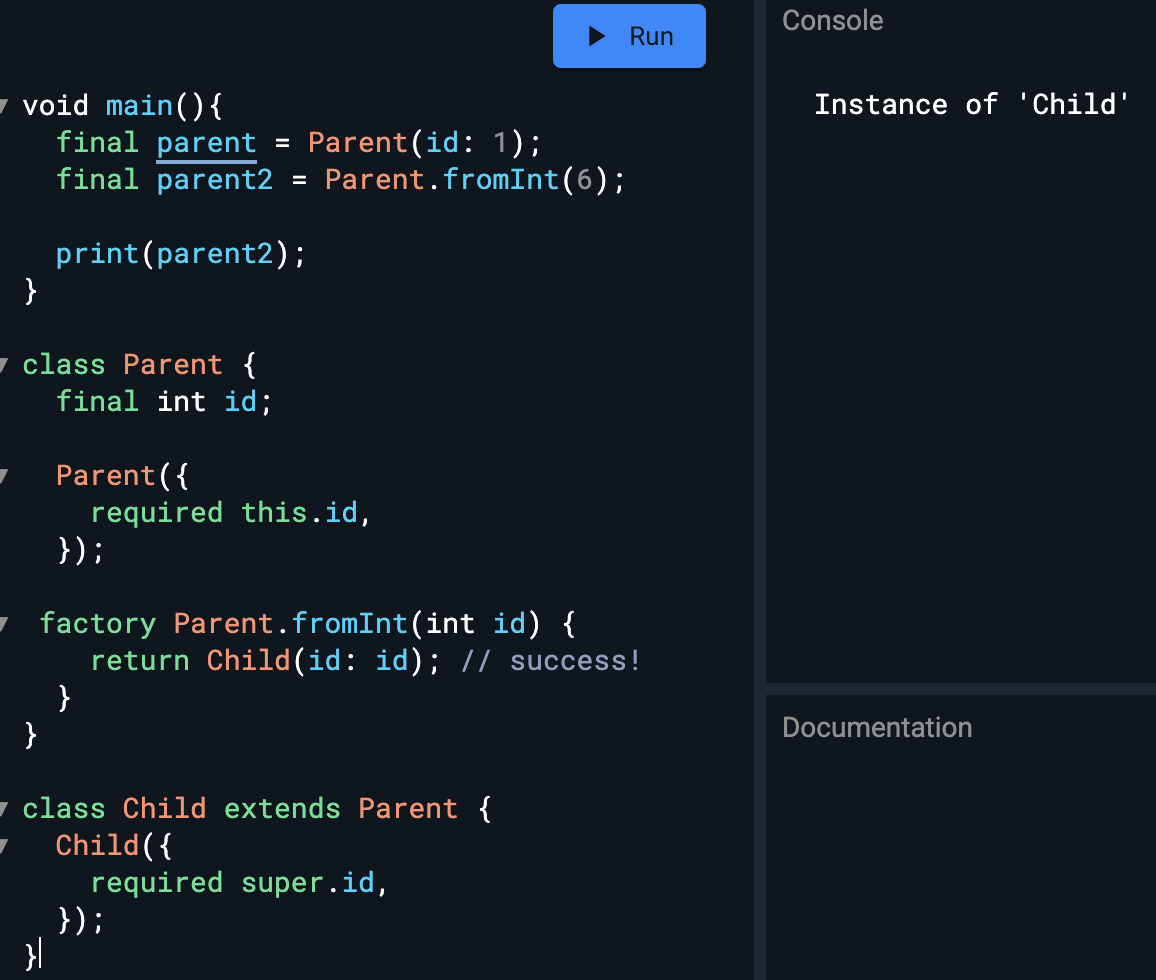 final parent2 = Parent.fromInt(3); // positional parameter 임