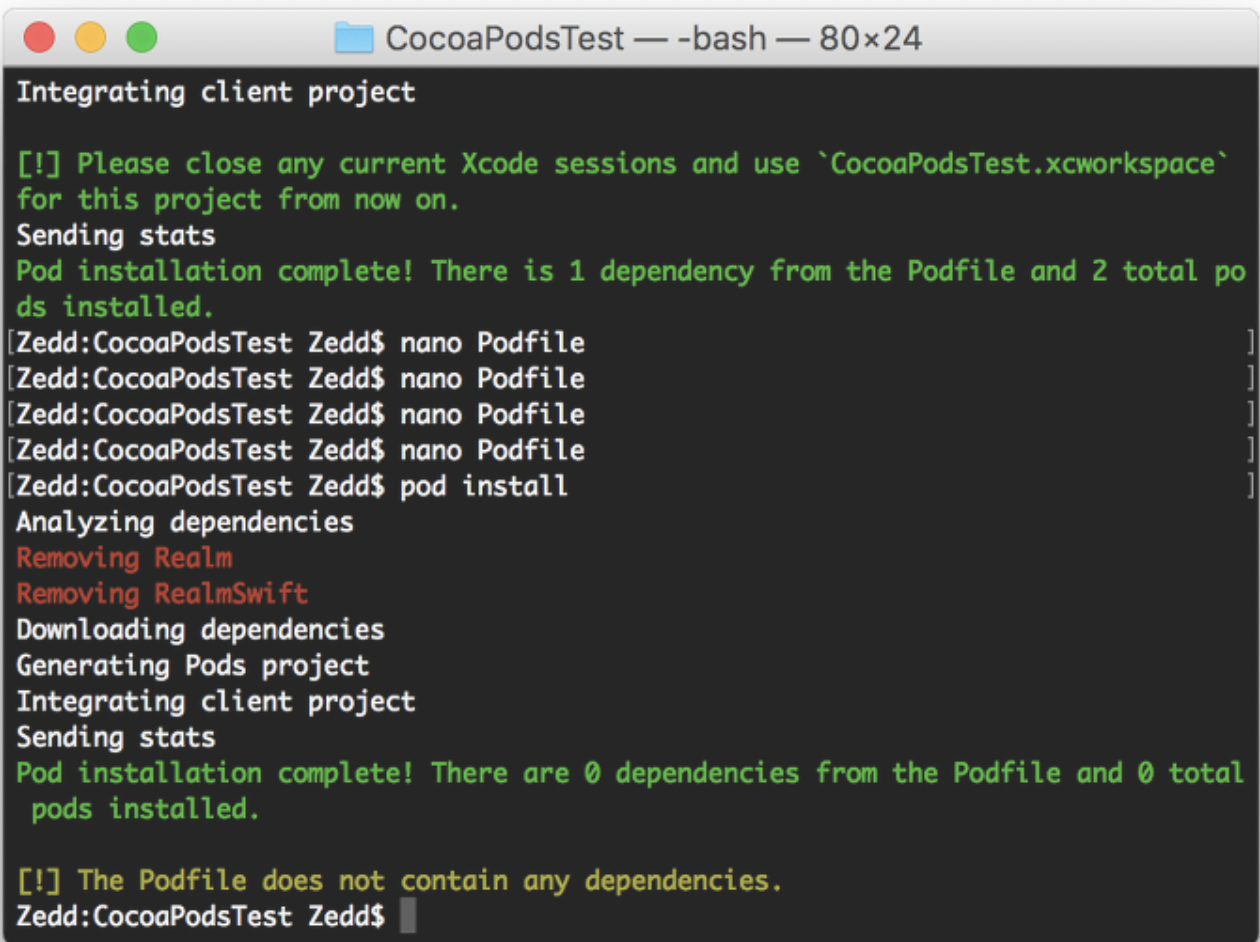 그 뒤 pod install 명령을 하면 성공적으로 삭제됩니다