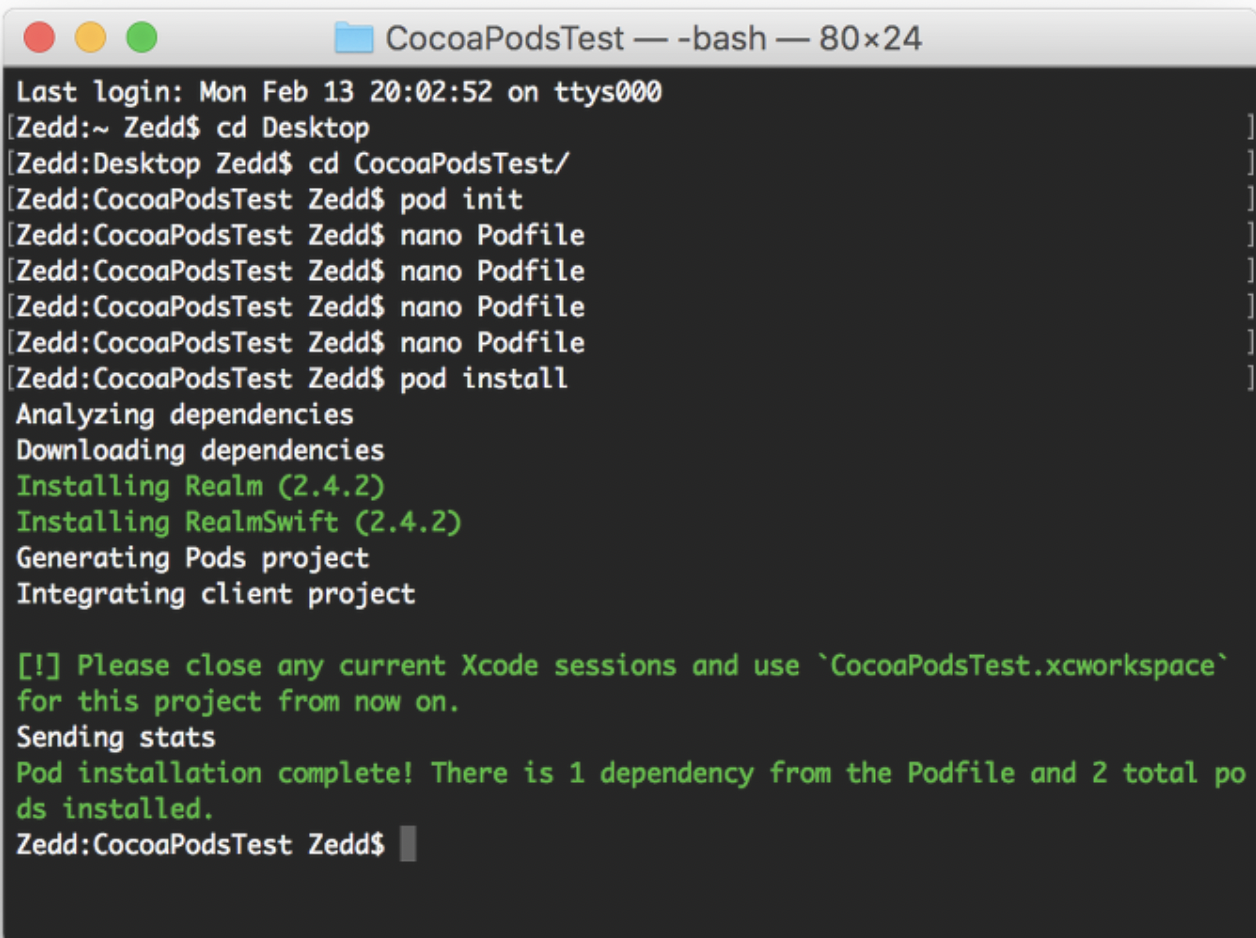 이제 우리는 코코아팟을 자유롭게 사용할 수 있습니다