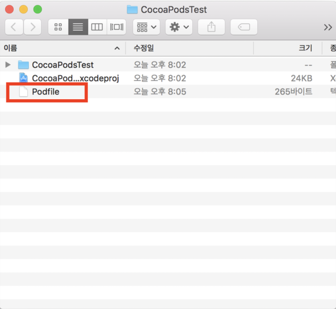 Podfile 이란 것이 생성되었습니다