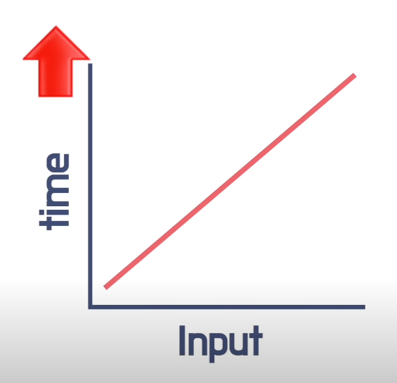 처음부터 순서대로, 차근차근 찾는 알고리즘은 선형 검색 알고리즘이다. 이러한 선형 검색 알고리즘의 최악의 경우는 우리가 찾는 아이템이 만약에 배열의 맨 마지막 끝에 있다거나 혹은 배열에 아예 없는 경우이다.(처음부터 하나씩 검색하므로..) 이 말인 즉슨, 배열이 커지면 커질수록 선형 검색을 하는 시간이 무척 길어질 것이라는 것이다. 이걸 바로 Linear Time Complexity (선형 시간복잡도)라고 한다.