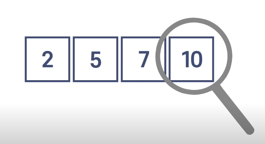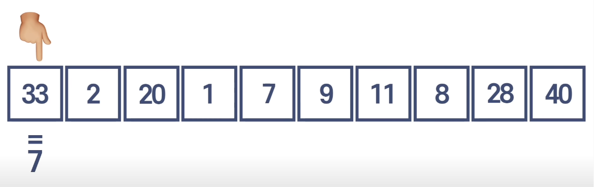 10개의 숫자가 존재하는 배열에서 7이라는 숫자를 찾는 경우를 살펴보자. 그렇다면 1번 아이템부터 차례로 7이 맞는지 탐색하게 된다. (그림 참고▼)