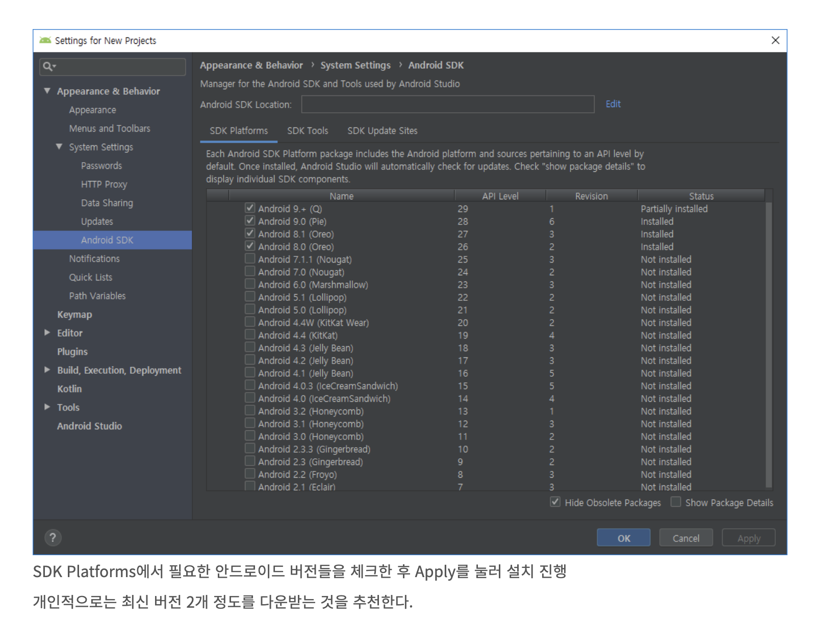 안드로이드 스튜디오 > SDK manager
