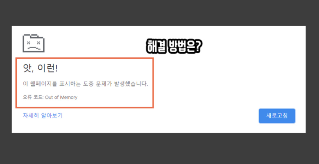 “크롬을 사용하던 도중 저 놈의 out of memory 오류 코드가 뜨면서 브라우저가 다운되는 현상 때문에 딥빡이 친 적이 한 두번이 아니었다.