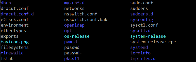 etc 안에 파일이나 디렉터리 목록들을 보여준다.