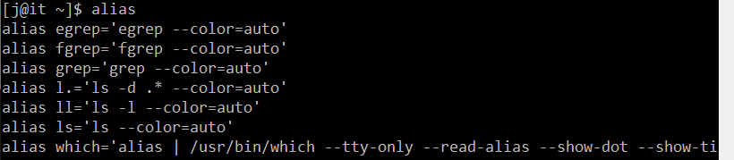 실제로 alias 명령어를 쓰면 ll = 'ls -l' 로 디폴트 값으로 지정되어 있다.