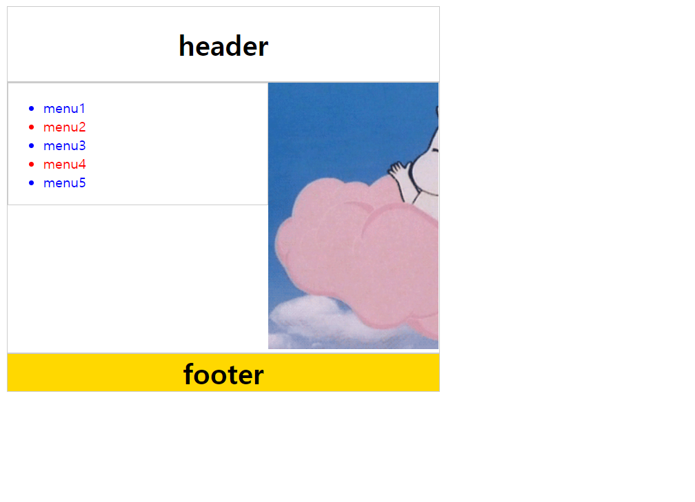시멘틱 태그로 하지 않고 div 태그로 모두 만들어주었다. div id 가 wrap 인 부분은 menu와 side_banner 를 감싸고 있는 형태이다.