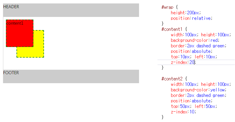 z-index 값이 높을 수록 표면으로 상단에 위치하게 된다.