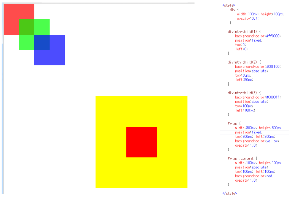빨강, 초록, 파랑, 노랑은 모두 브라우저 창을 기준으로 위치해 있다.